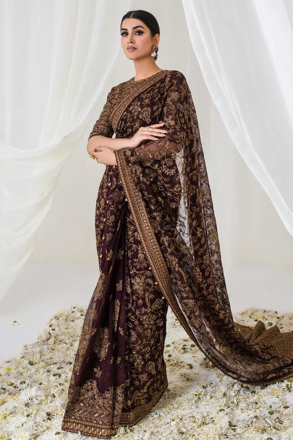 - Embroidered Chiffon Saree