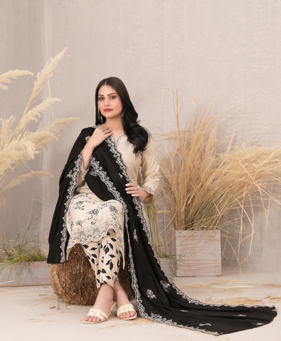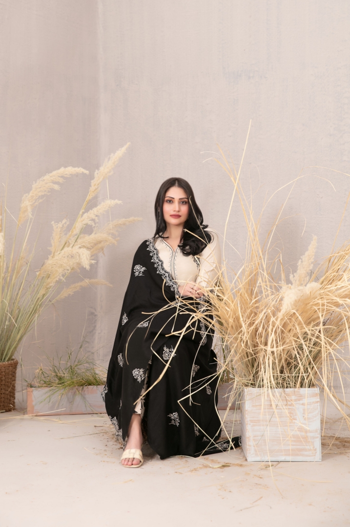 • Embroidered Leather Peach Pashmina Shawl Dupatta