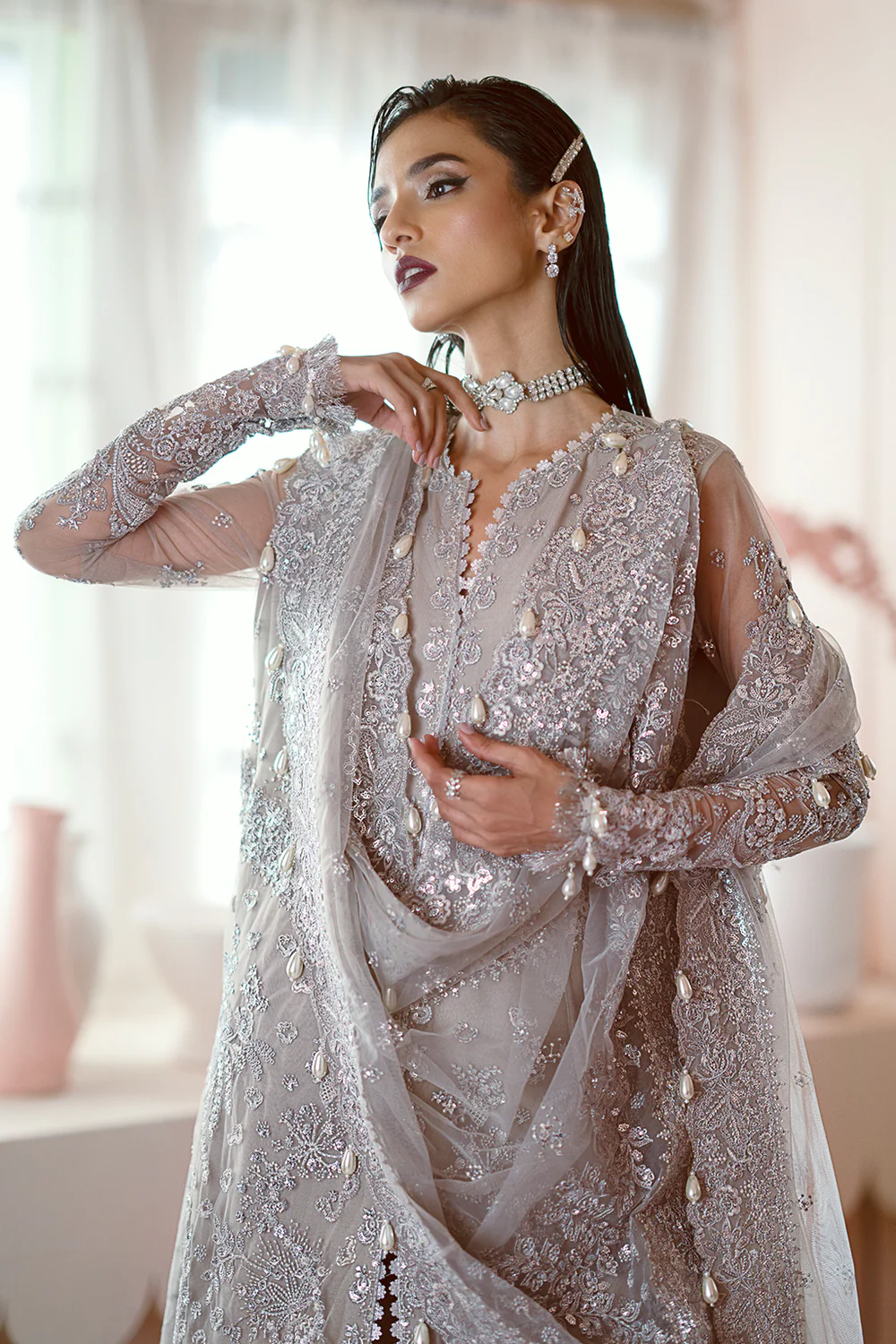NET EMBROIDERED FRONT BODY (2 PCS)