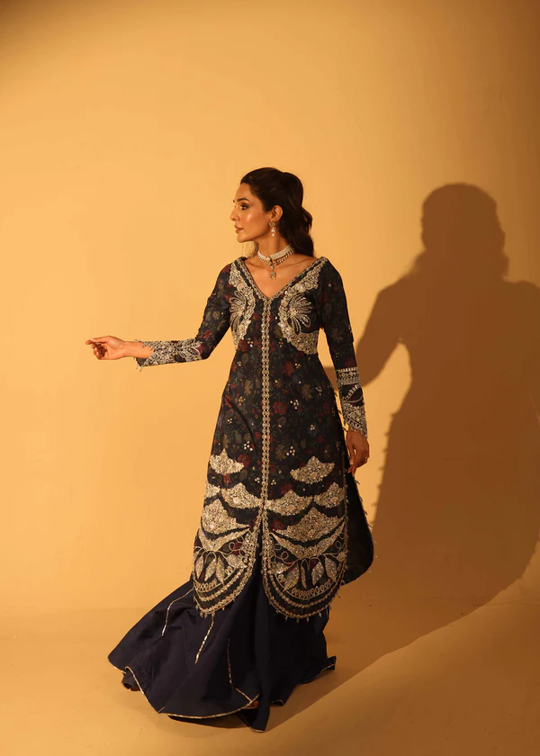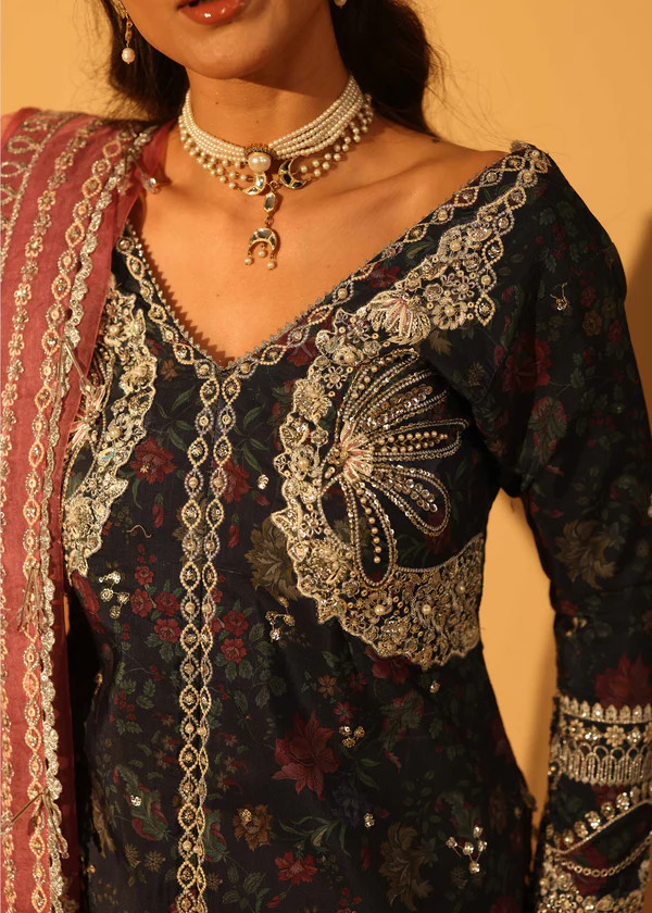 • Hand Embellished Right Panel 1 Pc Printed PP Raw Silk