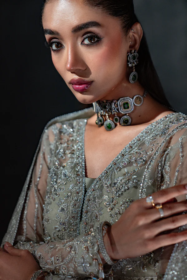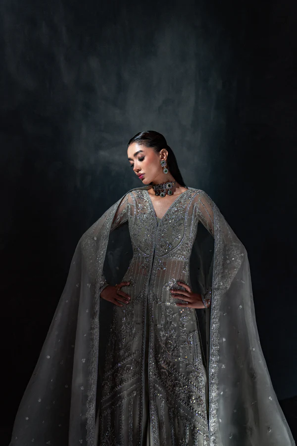1. Embroidered & Hand Embellished Front Center Panel (Organza) – 1Pcs
