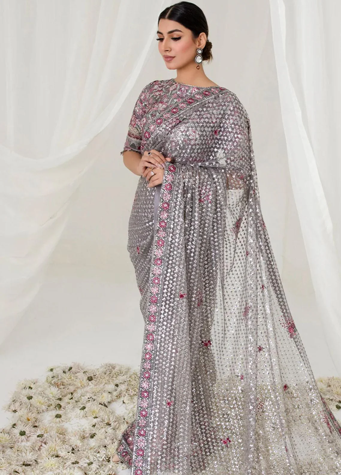 Embroidered Net Saree