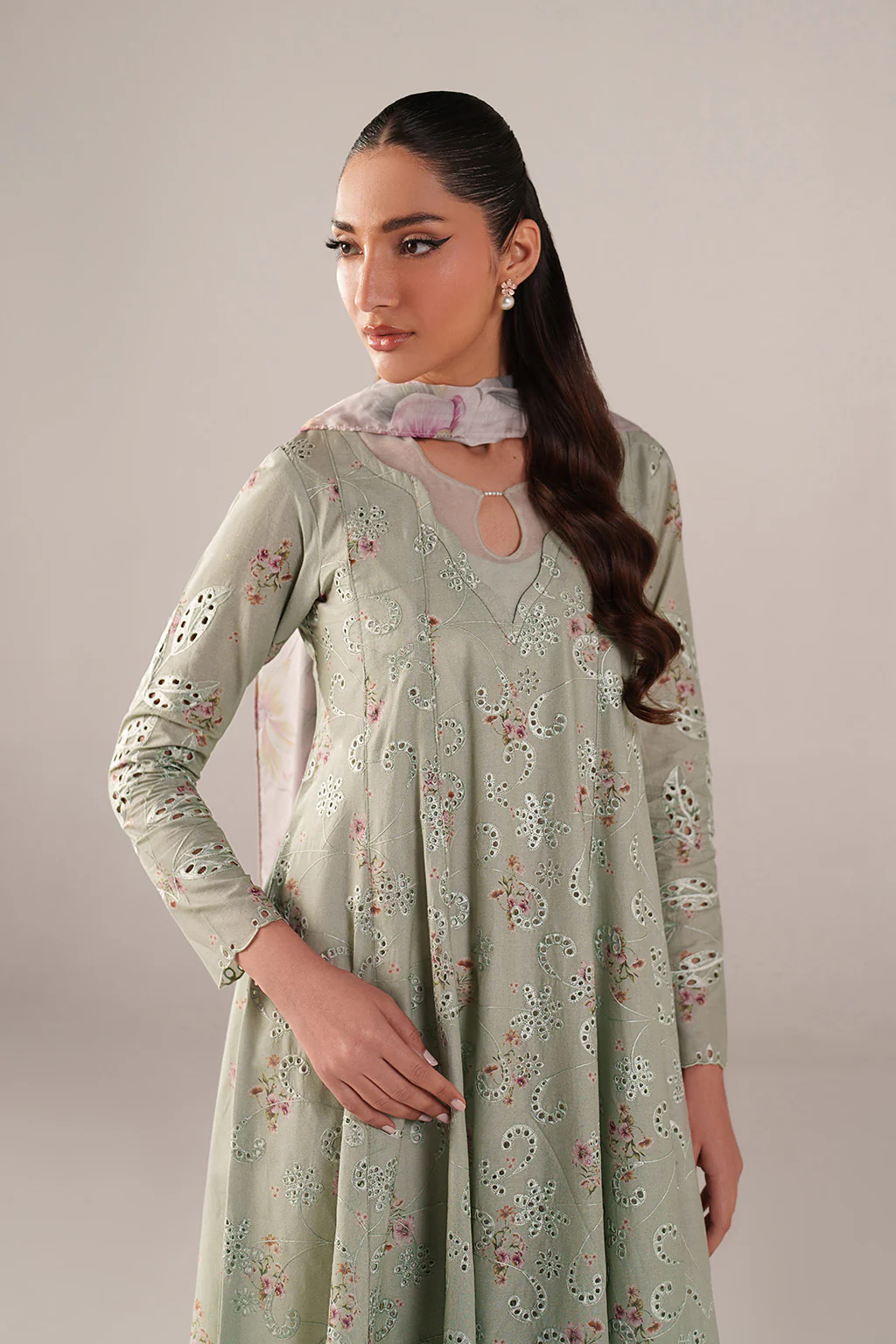 Frock Front: Borer Embroidered Printed Lawn