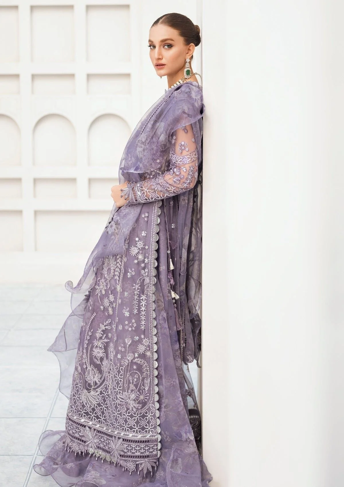 - Embroidered Net Sleeves with Borders