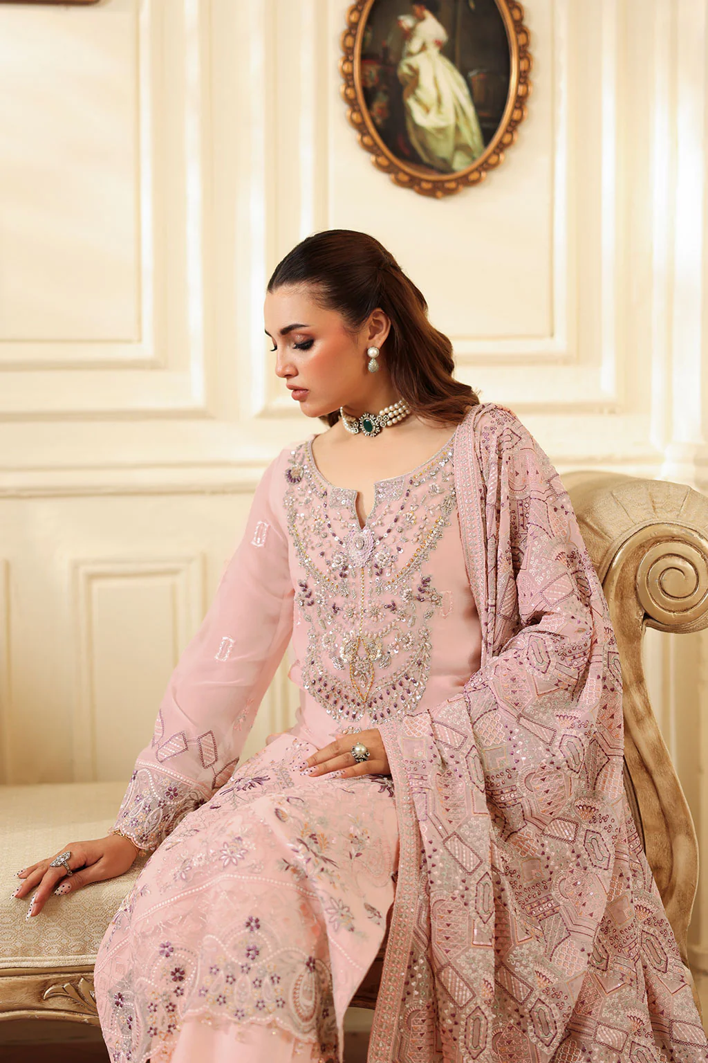 Chiffon Embroidered Front with Siquence