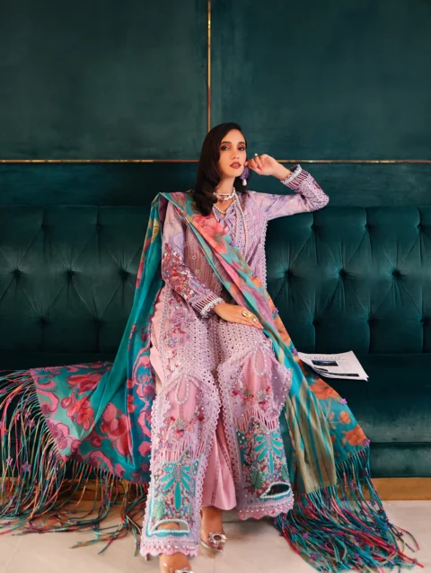 Shirt: Embroidered with chikankari detailing on premium lawn fabric.