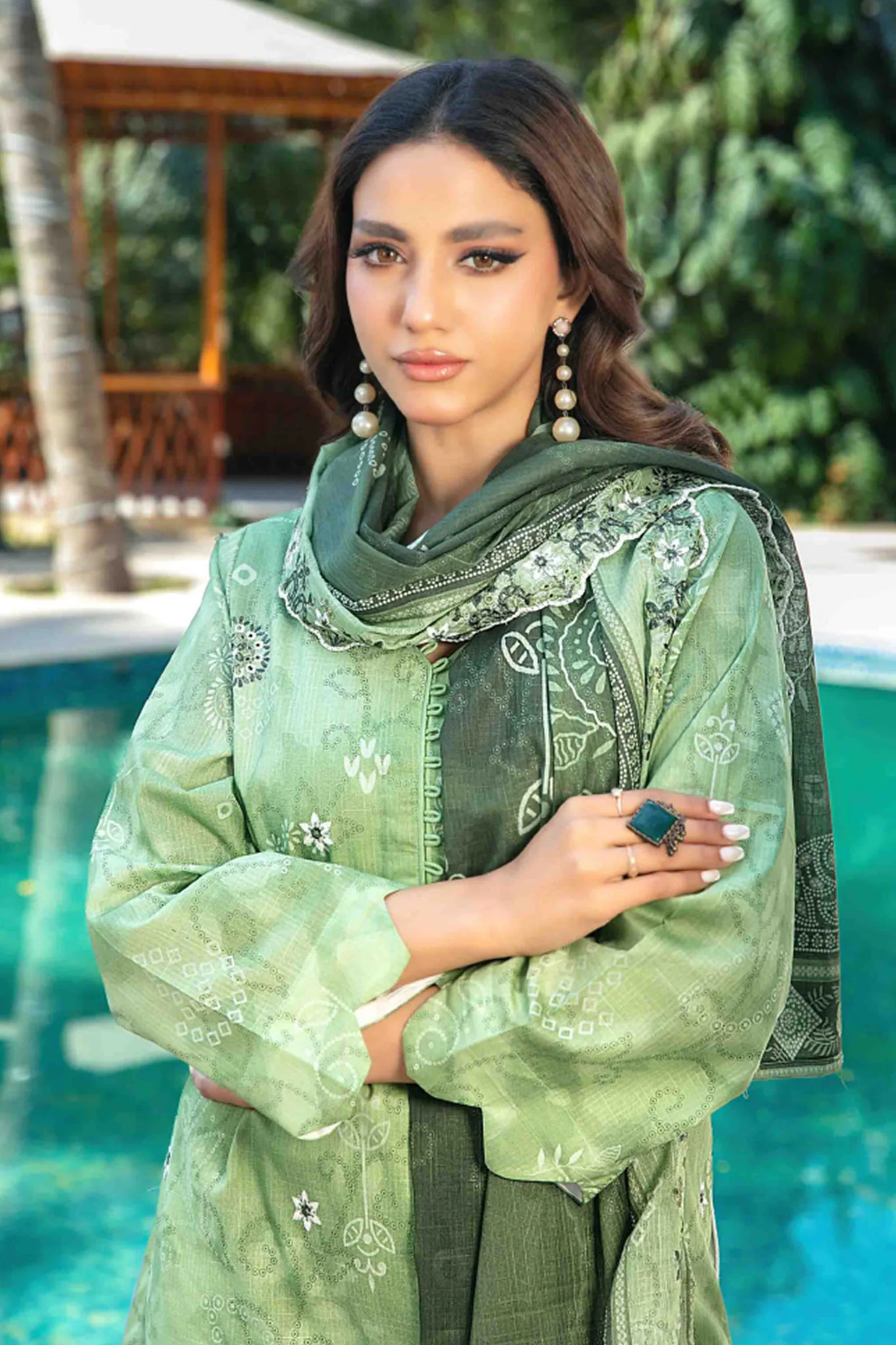 • Boti & Daman Embroidered Printed Slub lawn Shirt