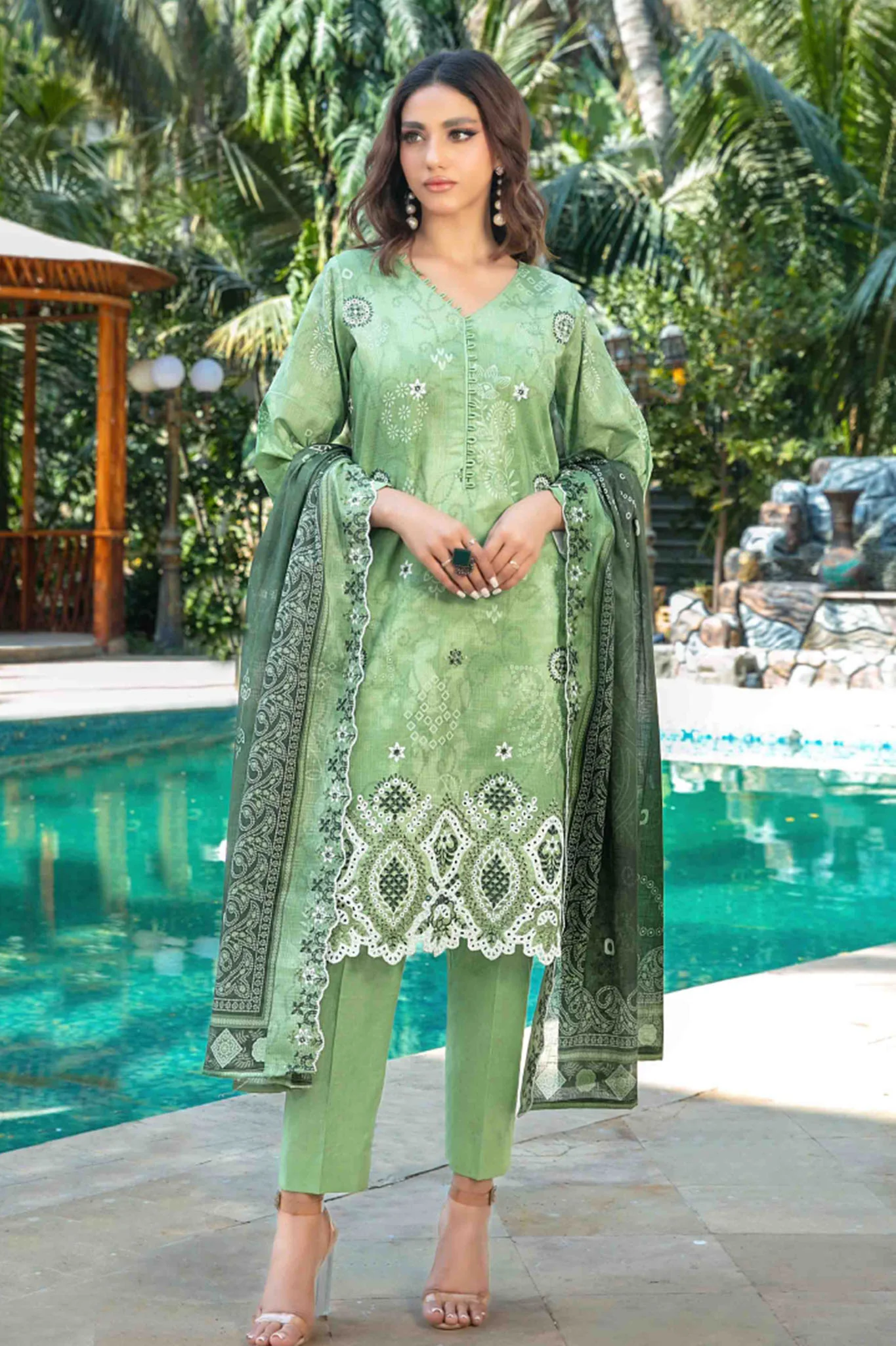 • Cutwork Embroidered Digital Printed Slub Lawn Dupatta