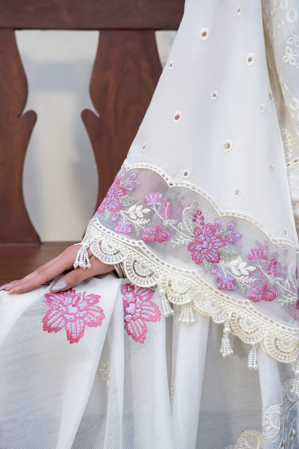 Dyed Cotton Net Embroidered Dupatta 2.5 Yard