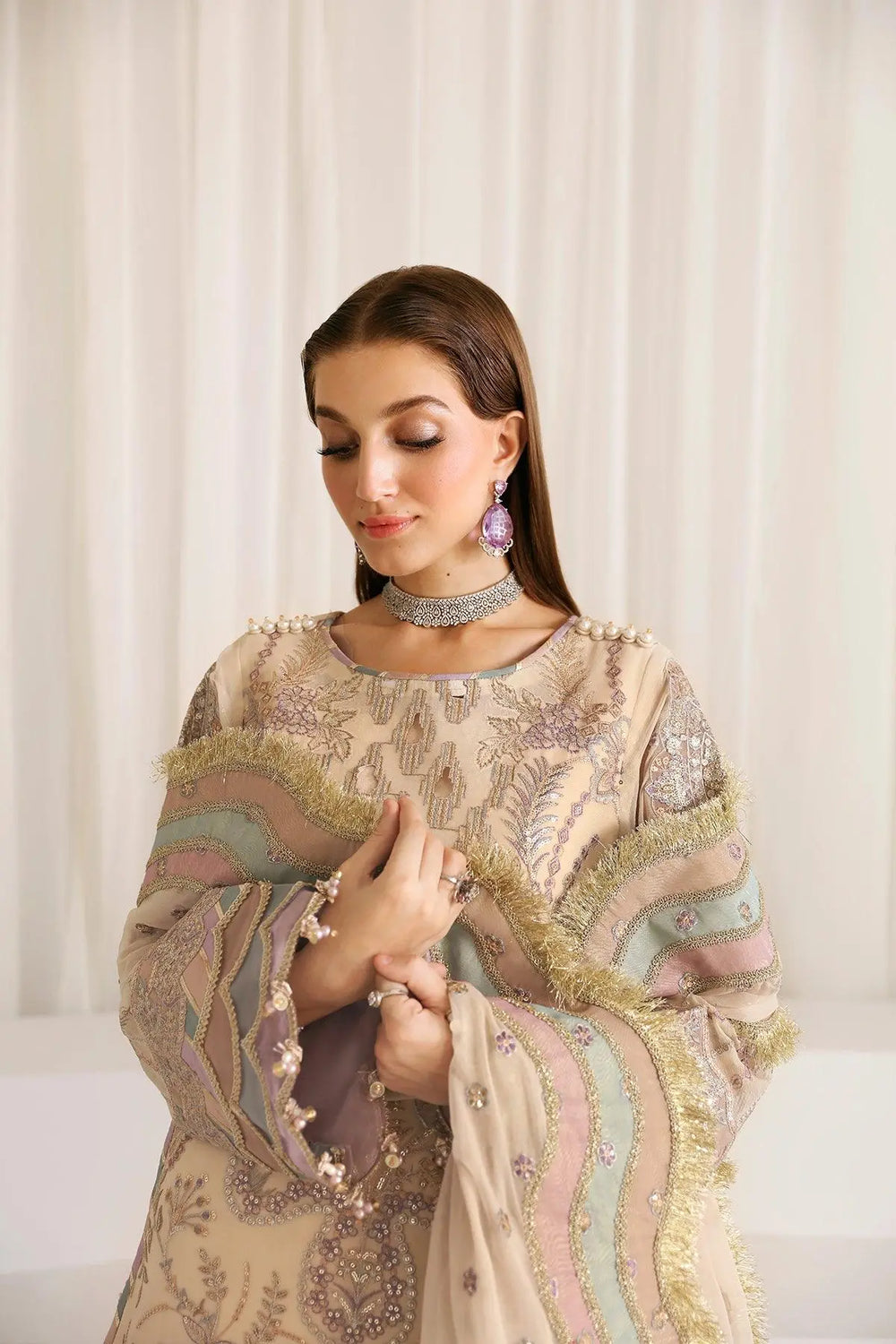 Embroidered Chiffon Front