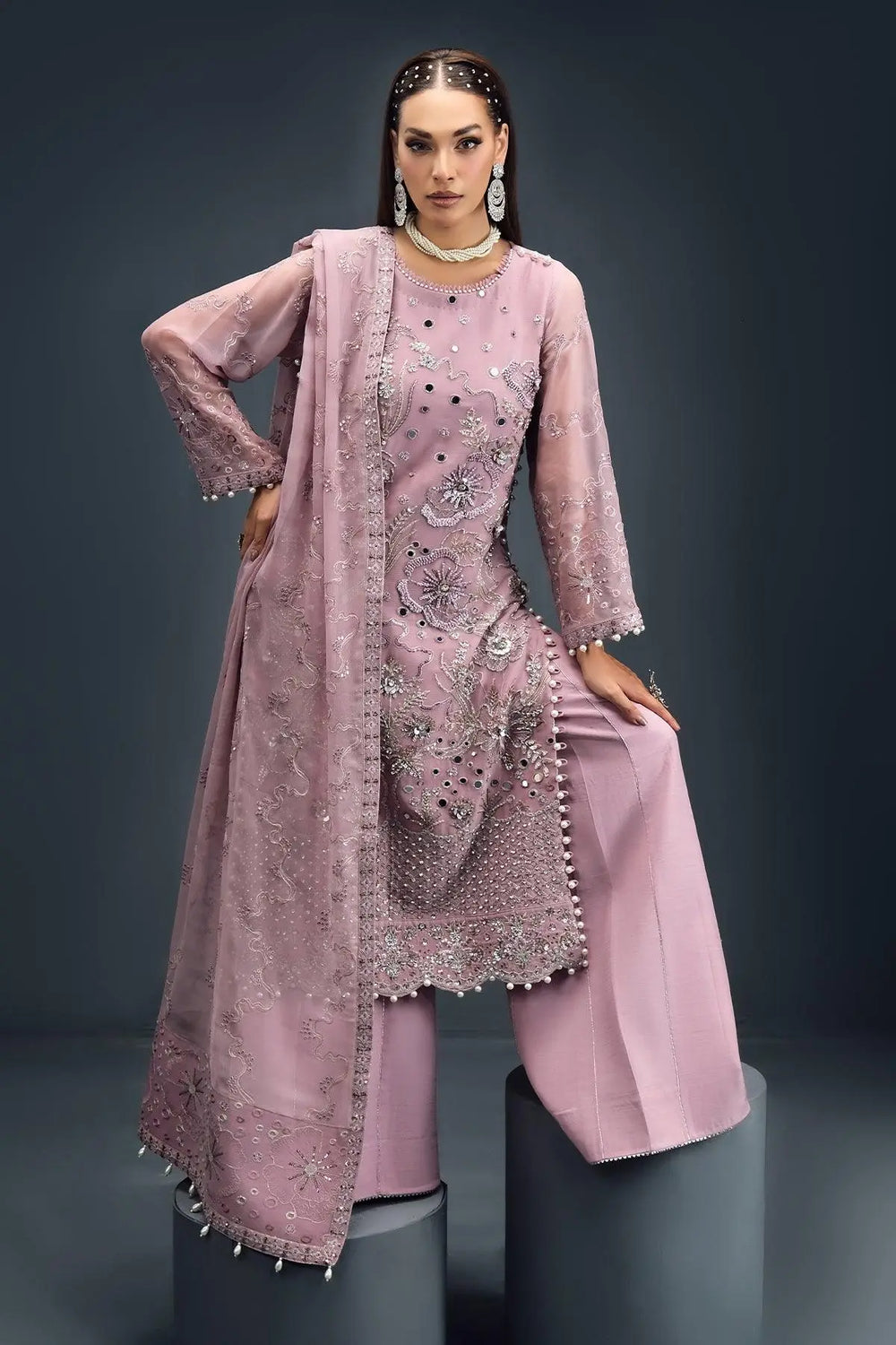 Embroidered Hand Embellished Chiffon Front