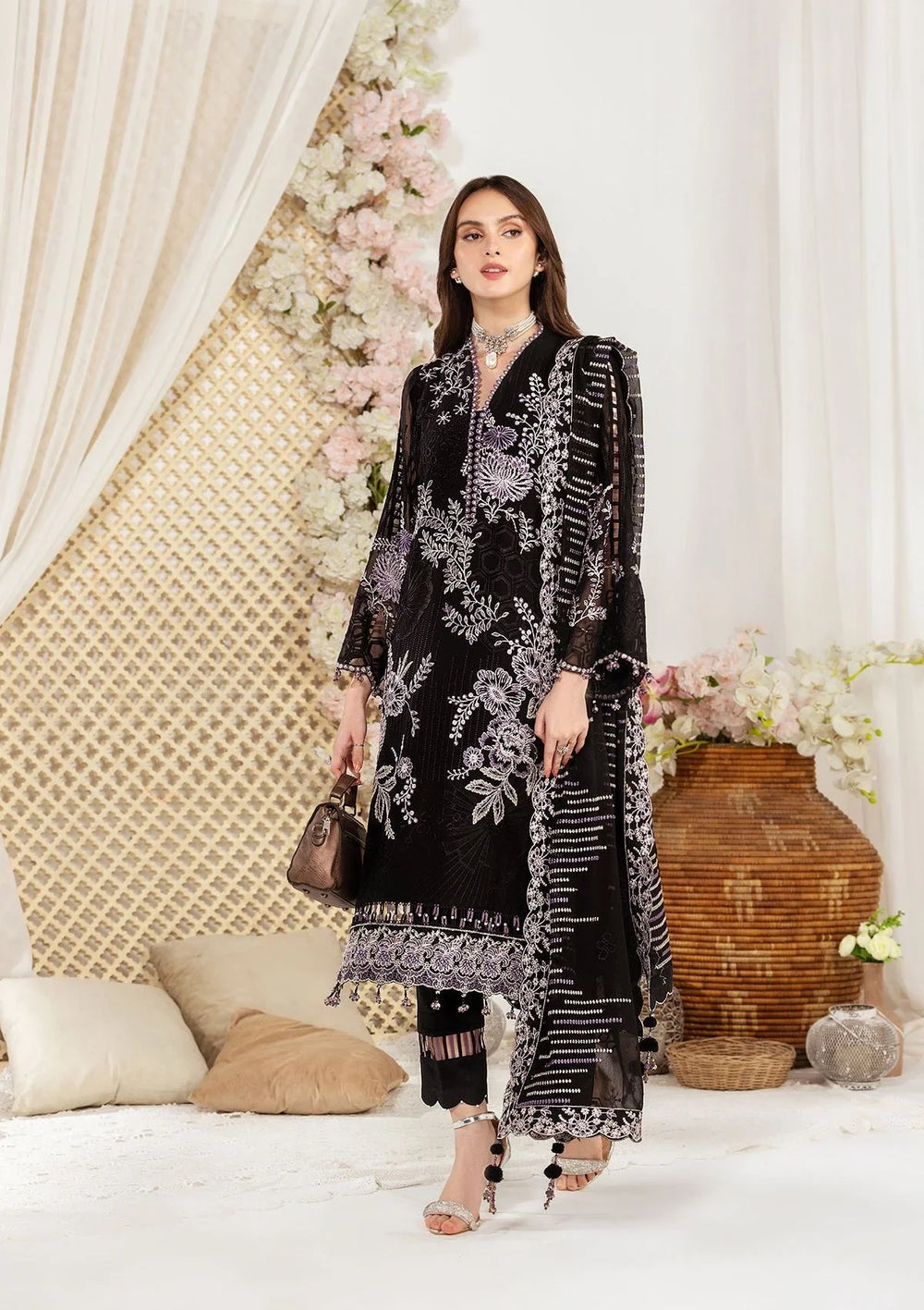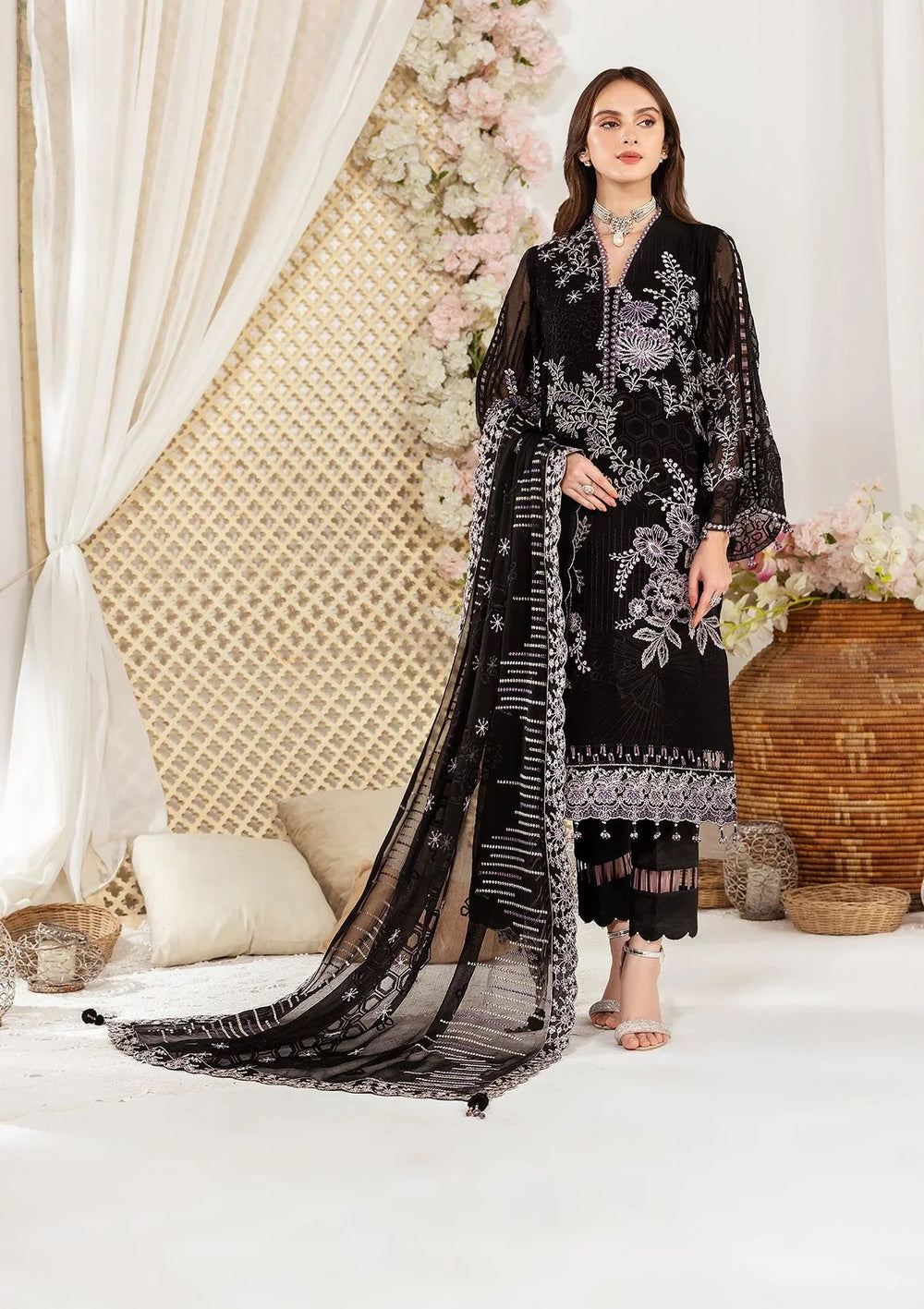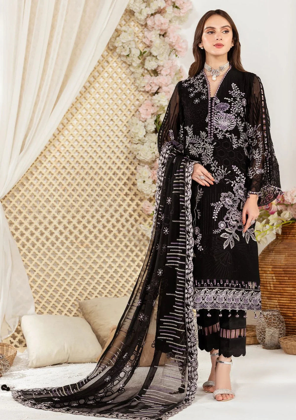 Embroidered Chiffon Front